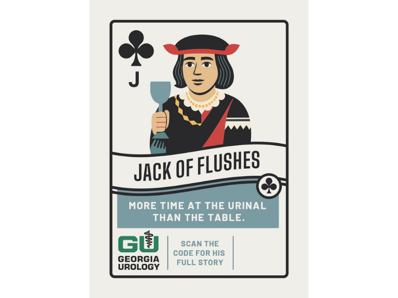 Royal Flush cards use humor and story to make common urologic issues easier to recognize—and easier to talk about. Here’s what this card may really be about, and how Georgia Urology can help.
